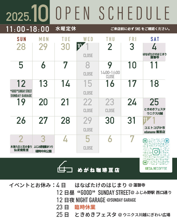 2025.10月のスケジュールをお知らせします。