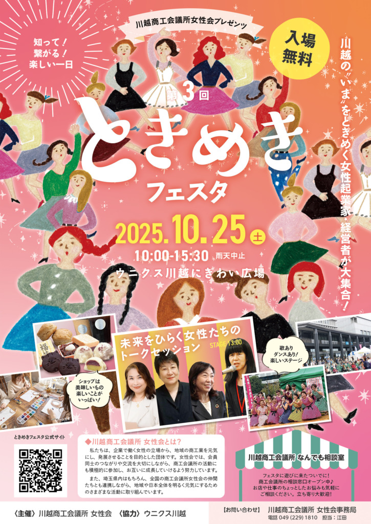 #川越商工会議所女性会 主催、歌やダンスのステージやマルシェ、ワークショップなどで盛り上がるイベント。今回は女性起業家、事業者の皆さんが登壇するトークセッションがあります!